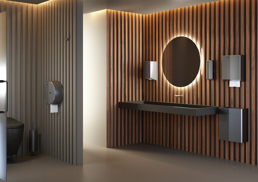 La colección COLOR EDITION supone una evolución en el concepto de baño profesional, donde el uso del color adquiere protagonismo. Esta propuesta responde a la creciente tendencia hacia espacios más personalizados, armónicos y cuidados, incorporando acabados metálicos que elevan el diseño en entornos contract.
