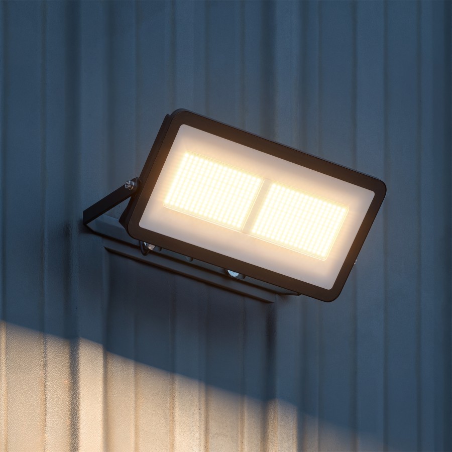 Disponible en 100W, 150W y 200W, integra tres configuraciones de temperatura de color (3.000K, 4.000K y 5.000K) y un haz de luz amplio de 115º, ideal para lograr una iluminación uniforme en fachadas o instalaciones deportivas.
